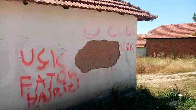 На кући породице Ђурковић, у селу Гојбуља код Вучитрна, ноћас су исписани графити „УЧК“ и име злочинца и терористе Фатона Хајризија који је хладнокрвно убио српског полицајца Николу Крсмановића, саопштила је данас Канцеларија Владе Србије за Косово и Метохију.