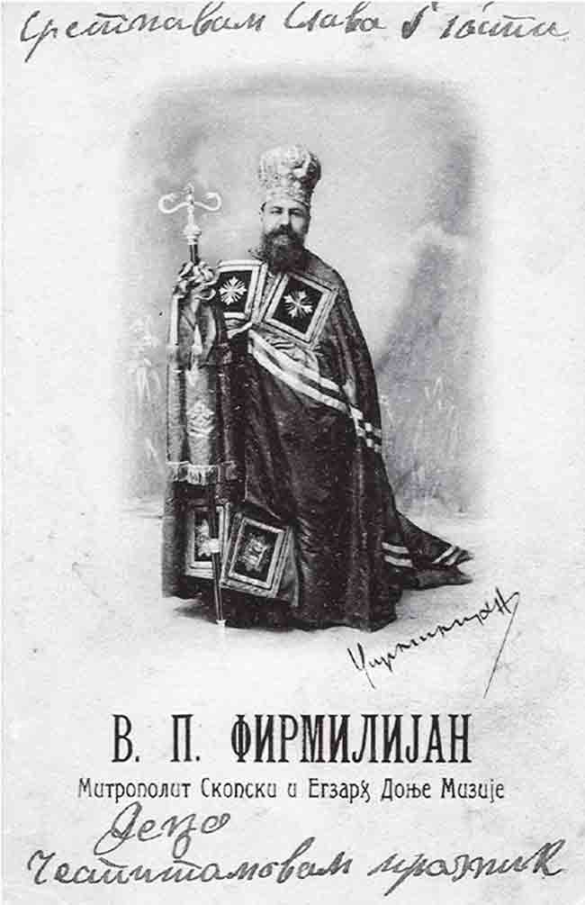 Фирмилијан, митрополит скопски и Егзарх Доње Мезије Фото: др Душица Бојић, Срби у Кумановском срезу од прве половине XIX до средине XX века, Историјски музеј Србије, 2015. *
