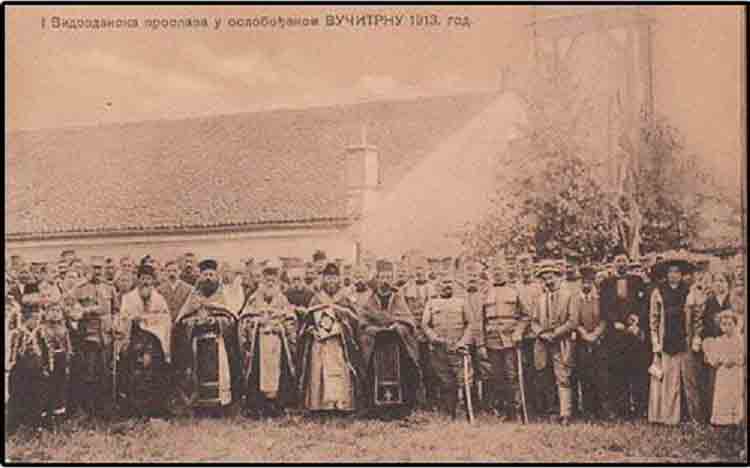 Вучитрнци у порти Цркве Светог Илије за Видовдан 1913. године Фото: Искра, Љиљана Сталетовић приватна архива